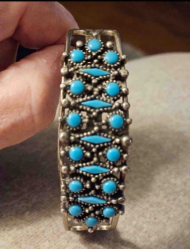 Vintage Zuni Style Sleeping Beauty Turquoise and Silver Cuff Bracelet