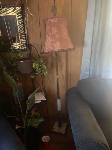 Vintage Mixed Media Floor Lamp with Marble Base and Floral Shade