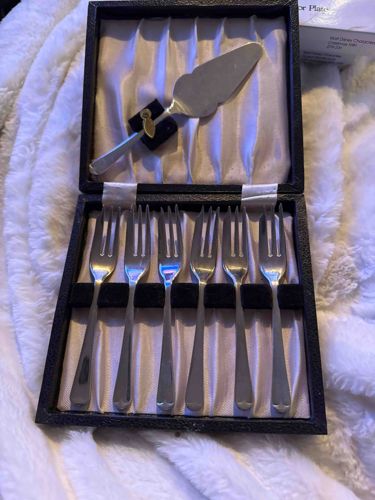 Vintage Silver-Plated Pastry Set in Fitted Presentation Case