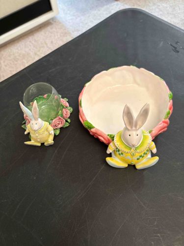Fitz and Floyd Rabbit Trinket Dish and Votive Holder Set