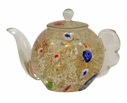 Murano Art Glass Teapot with Millefiori and Gold Aventurine
