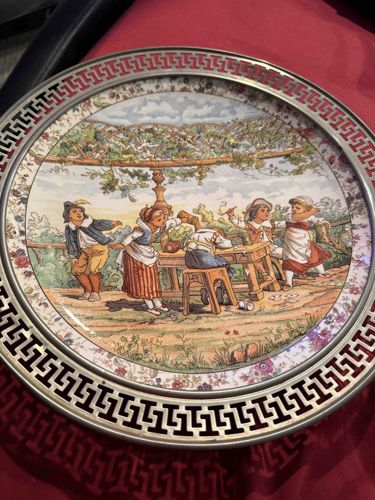 Vintage Villeroy & Boch Mettlach Phanolith or Chromolith Decorative Plate in Metal Gallery Frame
