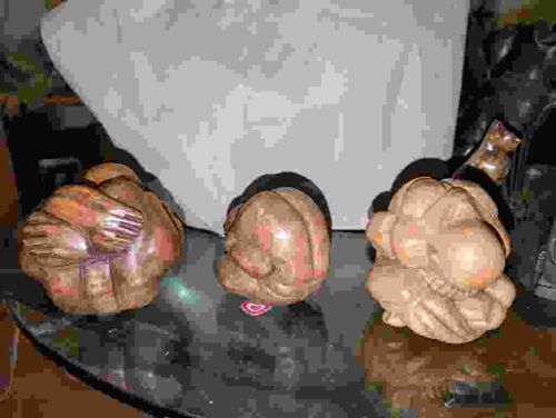 Trio of Carved Steatite Hear No Evil, See No Evil, Speak No Evil Figures