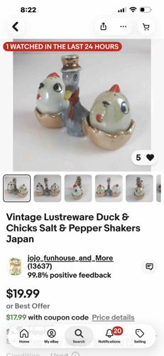 Vintage Japanese Lustreware Duck and Chicks Salt and Pepper Shakers Set