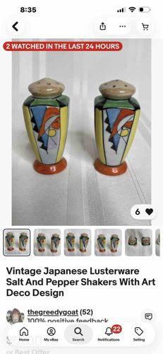 Vintage Japanese Lusterware Art Deco Geometric Salt and Pepper Shakers
