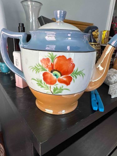 Japanese Lusterware Porcelain Teapot with Poppy Motif