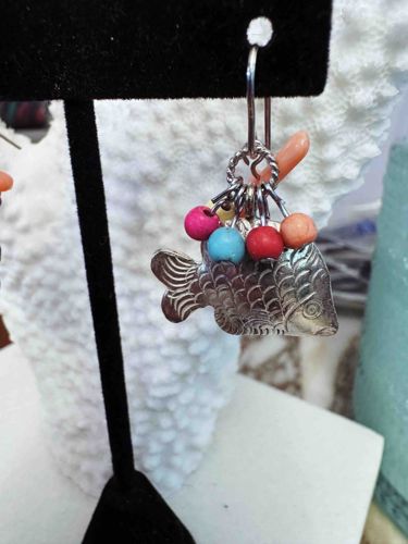 Balinese Sterling Silver Fish Charm Earring with Multicolored Beads