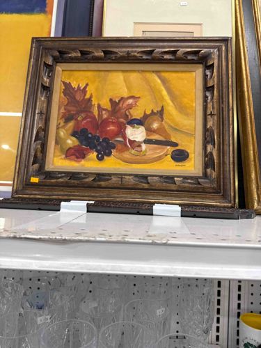 Mid-Century Harvest Still Life Oil Painting in Carved Frame