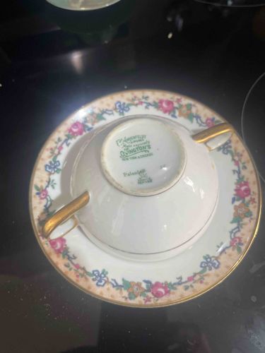 Ahrenfeldt Limoges Double-Handled Cream Soup Bowl and Saucer for Ovington's