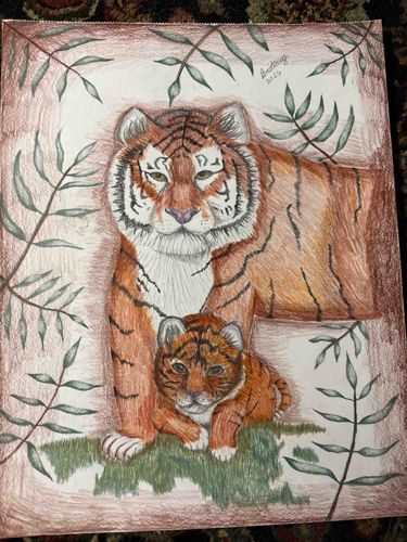 Colored Pencil Drawing of Tiger and Cub
