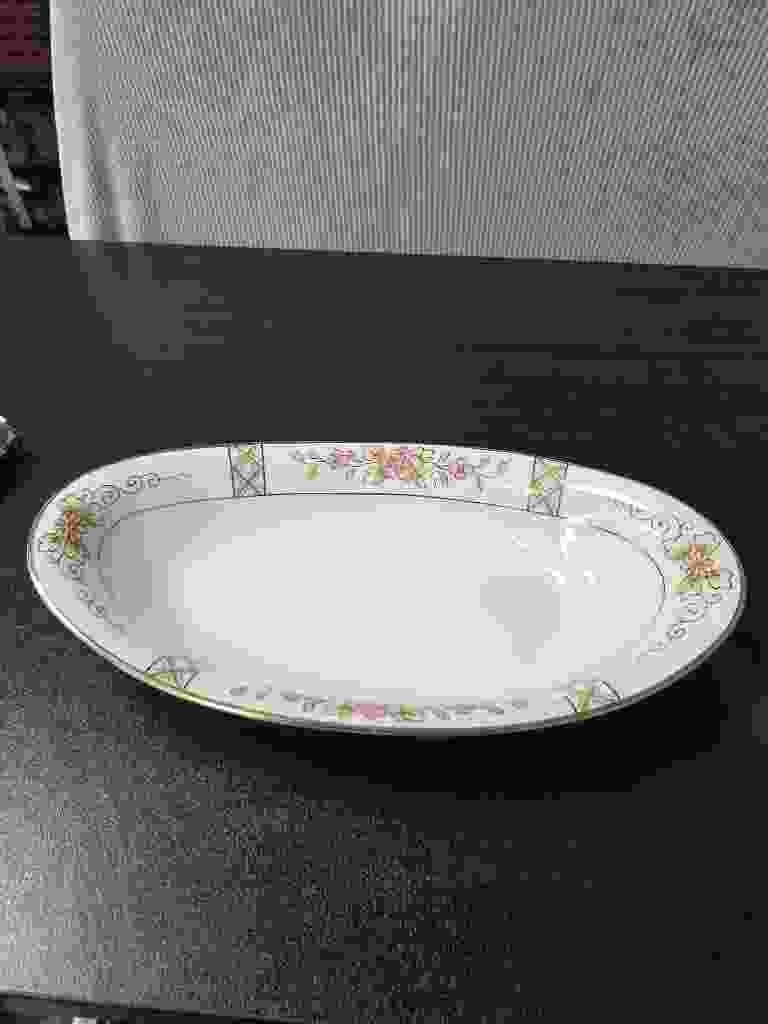 Vintage Oval Porcelain Serving Platter with Floral Border