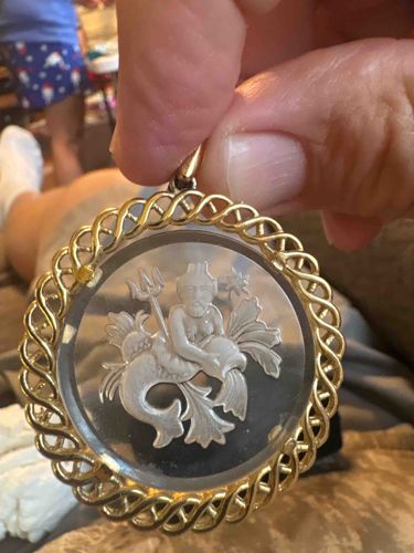 Vintage Intaglio Crystal Neptune Pendant with Braided Gold Frame