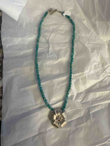 Bali Silver Hibiscus Flower Pendant with Russian Opal Beaded Necklace