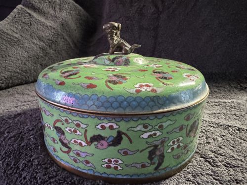 Chinese Cloisonné Enamel Covered Box with Foo Dog Finial