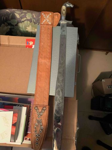 Mexican Espada Ancha Style Figural Horsehead Sword with Leather Sheath