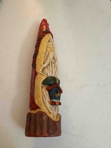 Folk Art Hand-Carved Wooden Santa Figurine with Birdhouse