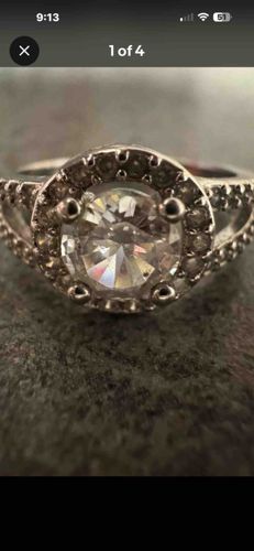 Halo-Style Simulated Diamond Ring in Silver-Tone Metal