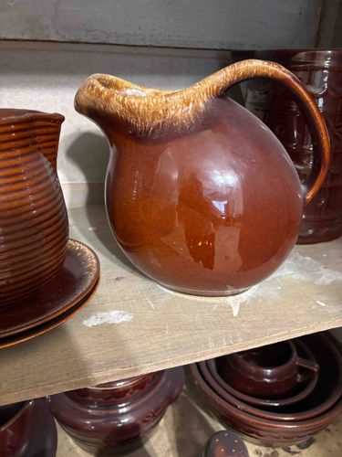 Mid-Century Hull Pottery Mirror Brown Drip Pitcher