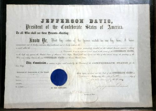 Privateer Commission Document from Jefferson Davis