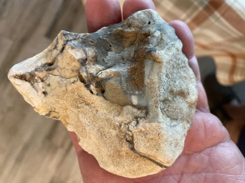 stone age multi tool hand axe scraper tool found in Guthrie, OK measuring 4" x 3.25