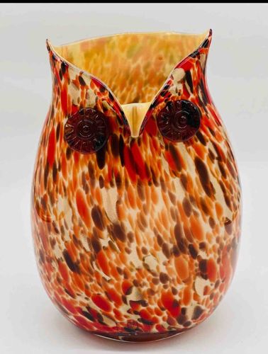Murano-Style Hand-Blown Spatter Glass Owl Vase