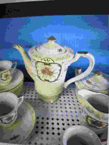 there are five cups and saucers, some of the fine gold rings on the saucers are faded. other than that there is no damage.
