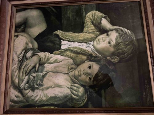 Vintage Lithograph Print of 'Two Children and a Kitten' by Luigi Kasimir