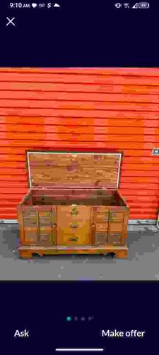 Mid-Century Cedar Storage Blanket Chest with Decorative Faux-Drawer Front