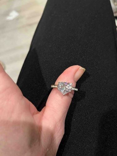 This fine jewelry item is a contemporary engagement-style ring featuring a large, heart-cut center stone held in a traditional prong setting. The center stone is a colorless brilliant-cut stimulant or gemstone, appearing to be approximately 3 to 4 carats in size equivalent. The band is a slender, polished metal shank (likely white gold, platinum, or sterling silver based on the high-luster silvery finish) and is embellished with a partial pavé or channel setting of smaller round-cut accent stones running down the shoulders. The craftsmanship displays a classic romantic aesthetic with a focus on maximizing light return through the primary heart facet. Upon close visual inspection, the metal appears to be in good condition with minor surface scratches consistent with light handling. No major chips or fractures are visible on the crown of the heart-shaped stone, though further magnification would be needed to determine if the stones are natural diamonds or lab-created alternatives like cubic zirconia or moissanite. The overall design suggests a modern production dating from the early 2000s to the present day.
