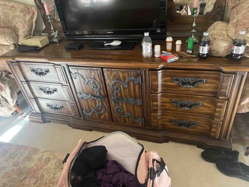 Mediterranean Style Oak Triple Dresser with Wrought Iron Accents