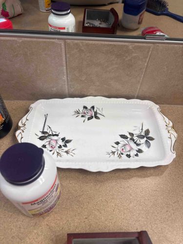Vintage Fine Bone China Rectangular Trinket Tray with Pink Rose Motif