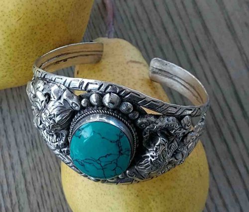 Southwestern Style Sterling Silver and Turquoise Dragon Cuff Bracelet