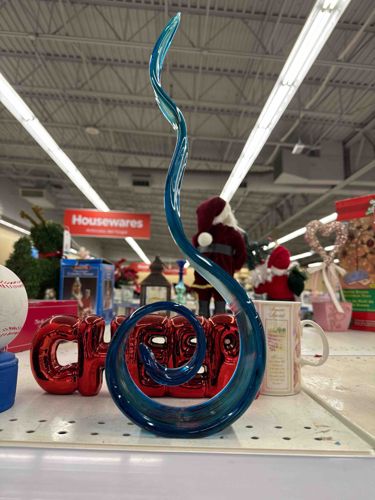 Teal and Cerulean Hand-Blown Murano Style Art Glass Spiral Sculpture