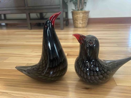 Pair of Murano Style Art Glass Birds