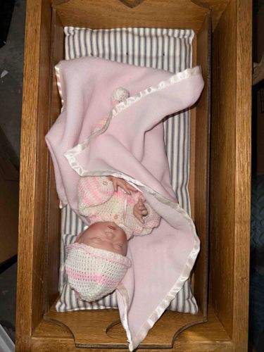 Hyper-Realistic Reborn Newborn Doll with Vintage Wood Cradle