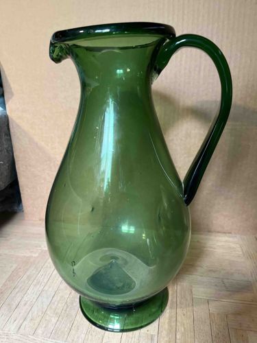 Mid-Century Blown Forest Green Glass Pitcher