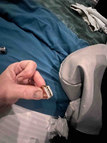 This item is a contemporary style fashion ring featuring a wide band construction, likely composed of 10k or 14k yellow gold based on the warm metallic hue. The ring's primary design element is its multi-row facade, which appears to consist of three distinct horizontal bands of clear, round-cut stones—most likely cubic zirconia or small diamonds—alternating with polished gold rails. The stones are integrated into the band using a channel setting, which provides a flush, smooth surface that minimizes snagging on clothing. The band displays a tapered width, narrowing toward the bottom of the shank for wearer comfort. In terms of condition, the metal surfaces show evidence of light surface scratches and a dulling of the polish, consistent with regular wear. There is no immediate evidence of missing stones, though the clarity and brilliance of the accents seem somewhat diminished, possibly due to dirt accumulation or the inherent quality of the stones. The overall craftsmanship suggests a mass-produced fine jewelry piece, potentially from the late 20th to early 21st century. No internal hallmarks are visible in the photograph, but the weight and substantial profile of the piece indicate a significant metal content.
