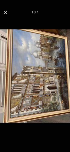 Framed Oil Painting of a Venice Canal Seascape