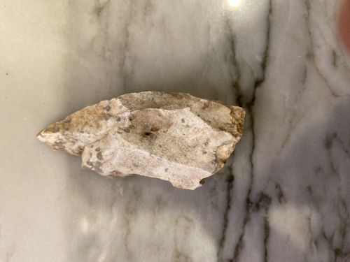Paleo Indian chert point found in Guthrie OK measuring 3" x 1.25"