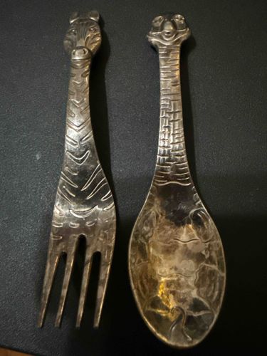 Reed and Barton zebra and tortoise spoon and fork set.