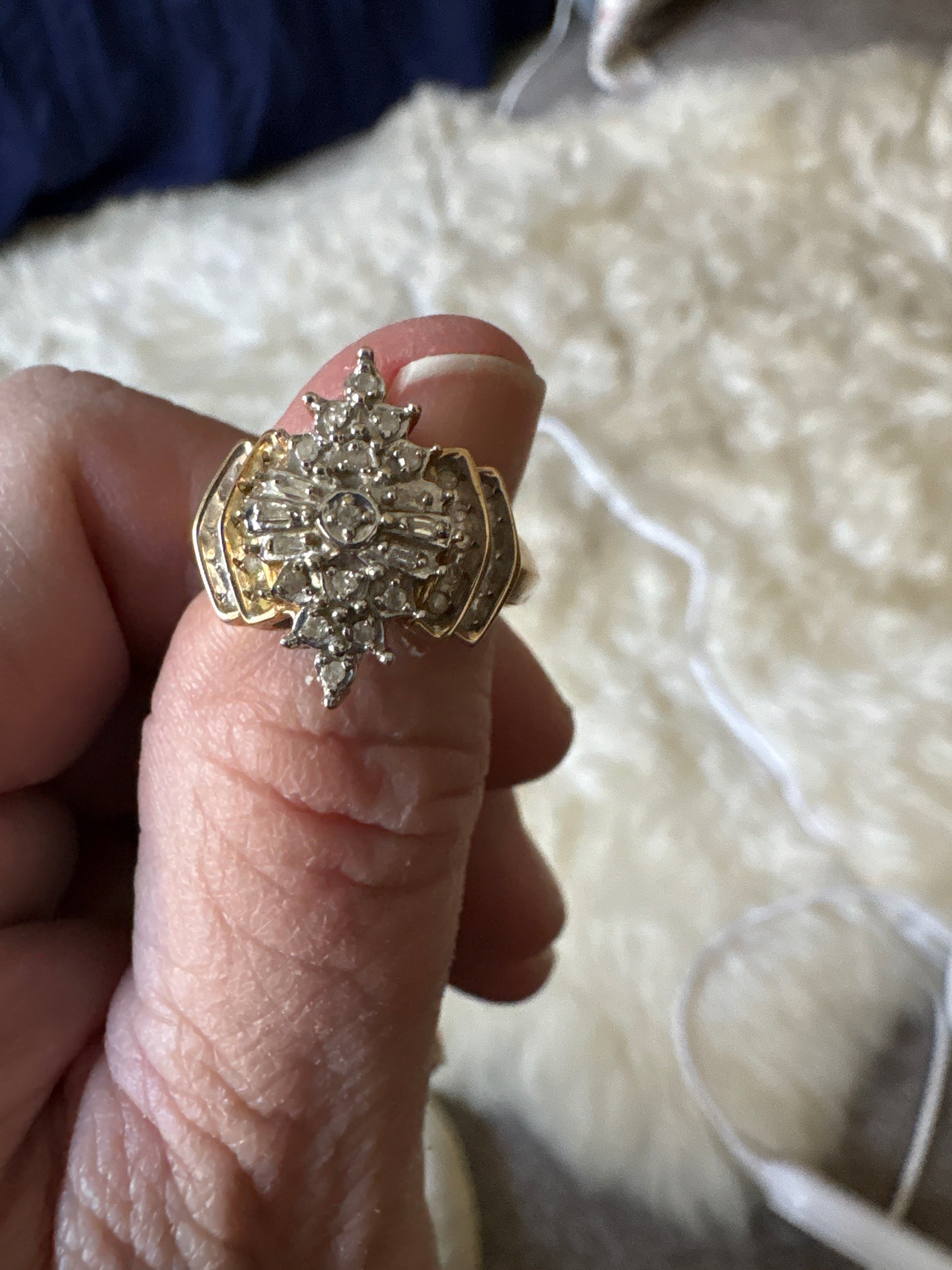 Cluster-style Yellow and White Gold Diamond Ring