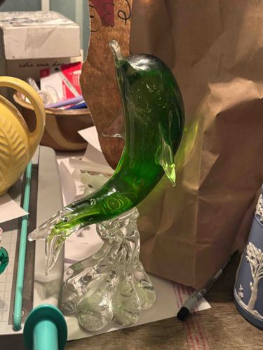 Murano Style Bullicante Green Glass Dolphin Figurine