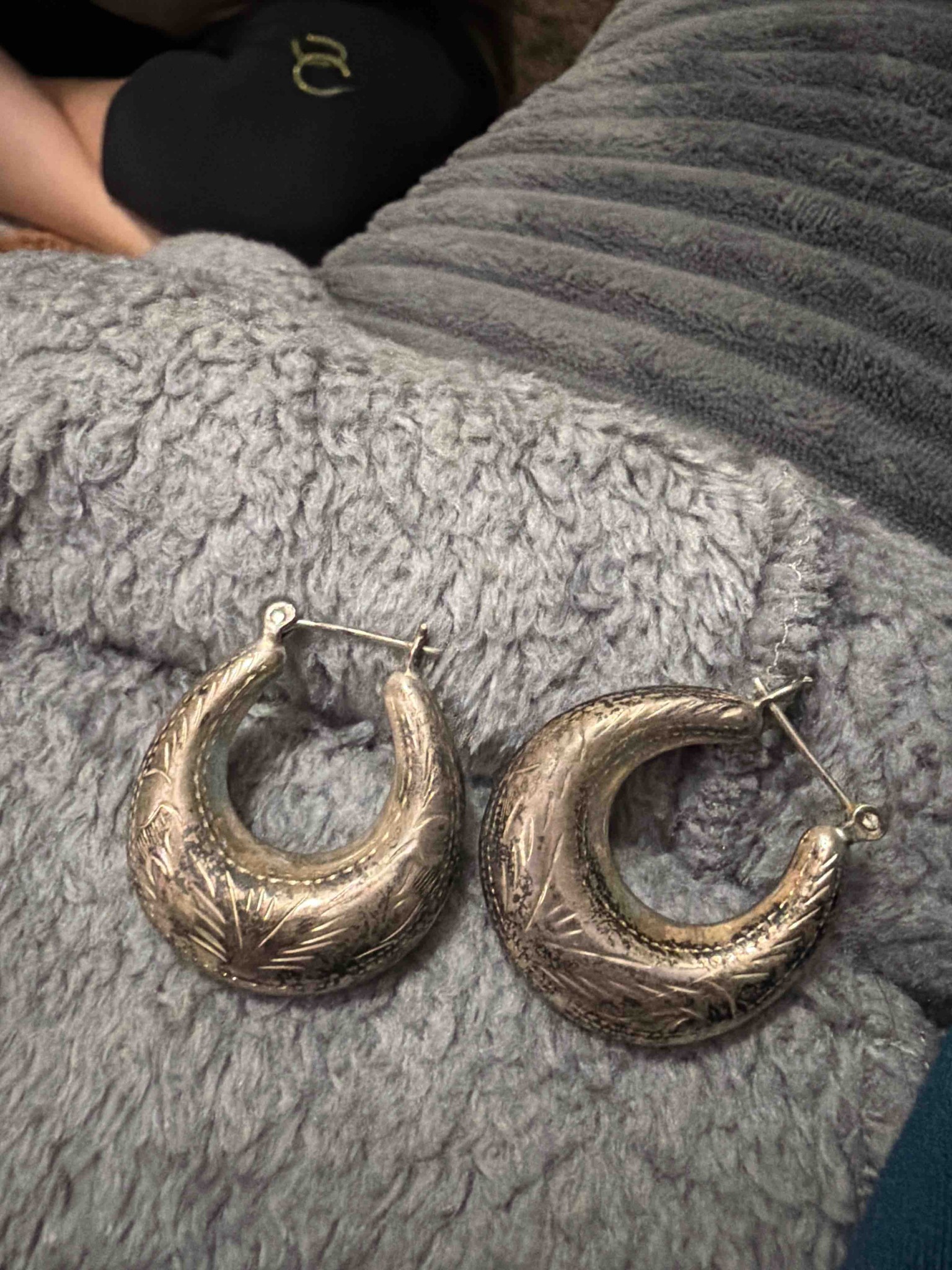 Vintage Engraved Sterling Silver Chunky Hoop Earrings