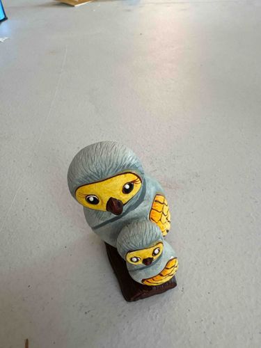 Folk Art Hand-Carved and Painted Wood Owl Family Figurine