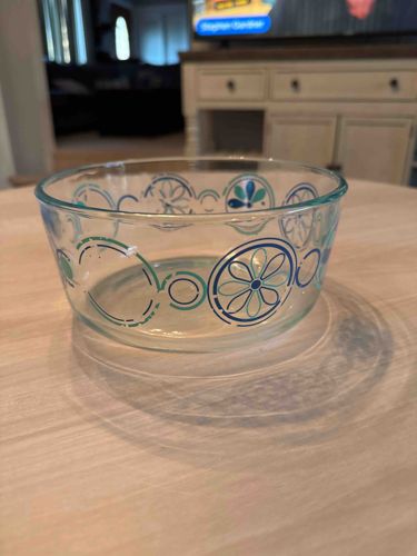 Anchor Hocking Blue and Teal Floral Medallion Glass Storage Bowl