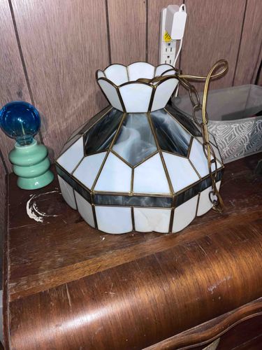 Vintage Tiffany-Style Slag Glass Swag Lamp