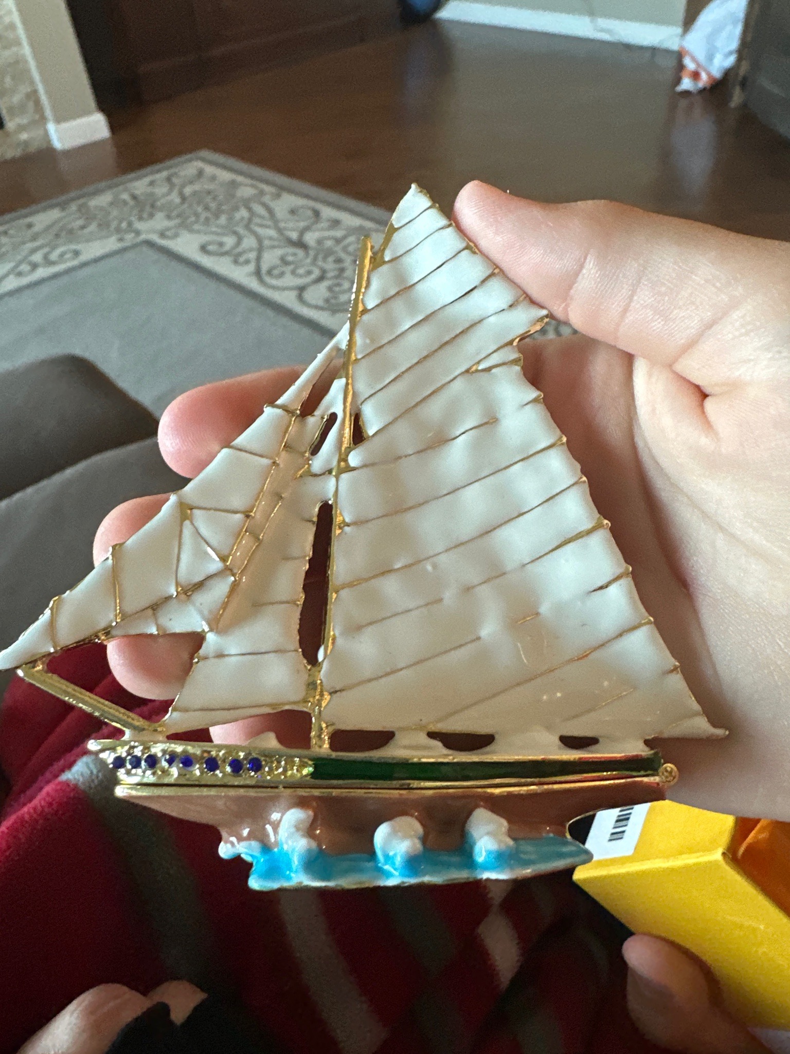 Enameled Bejeweled Sailboat Trinket Box