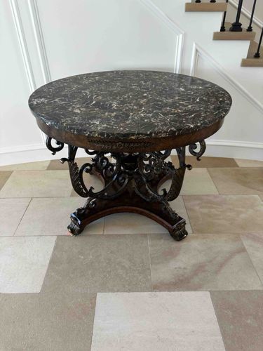 Maitland-Smith Neoclassical Style Bronze and Marble Top Center Table