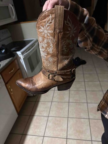 Embroidered Tan Distressed Leather Western Boots