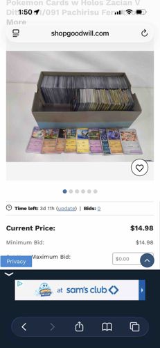 This lot consists of a large, disorganized collection of Pokémon trading cards housed in a brown-and-blue cardboard storage box. The collection includes several hundred cards, featuring a mix of standard common/uncommon cards and several highlighted holographic (holofoil) cards displayed in the foreground. Identifiable cards among the selection include a Zacian V, Pachirisu, and other modern-era Pokémon characters. The cards are constructed from laminated cardstock with glossy finishes; the holofoil versions exhibit light-refractivity typical of modern TCG sets produced by The Pokémon Company. Based on the specific card art and the 'V' designation on the Zacian card, this collection primarily contains cards from the Sword & Shield era (circa 2020-2023) or the Scarlet & Violet era. The cards appear to be in mixed condition; while those in the foreground are displayed cleanly, the bulk storage orientation suggests potential for edge wear, light surface scratches, and corner softening from handling and unprotected storage. The lack of individual protective sleeves for the bulk stack is a notable condition factor. The overall craftsmanship is consistent with mass-produced collectible gaming cards, featuring vibrant multi-color printing and standardized dimensions (typically 2.5 by 3.5 inches). No specific maker's marks are visible beyond the official Nintendo/Creatures Inc./GAME FREAK copyright branding expected on such goods.